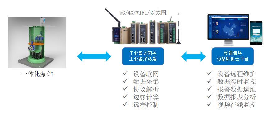 通過在一體化泵站內(nèi)部署物通博聯(lián)(WideIoT)工業(yè)智能網(wǎng)關(guān),接入PLC能夠?qū)崟r采集水泵狀態(tài)參數(shù)及流量數(shù)據(jù),并通過4G網(wǎng)絡(luò)對接到設(shè)備運(yùn)維管理平臺中。管理人員能夠通過手機(jī)電腦在線巡檢各個泵站的位置分布、運(yùn)行狀態(tài)、工藝參數(shù)、告警頻率、運(yùn)維工單等信息,并能實現(xiàn)PLC遠(yuǎn)程維護(hù),從而有助于減少運(yùn)維成本,實現(xiàn)精準(zhǔn)運(yùn)維與智慧運(yùn)維。