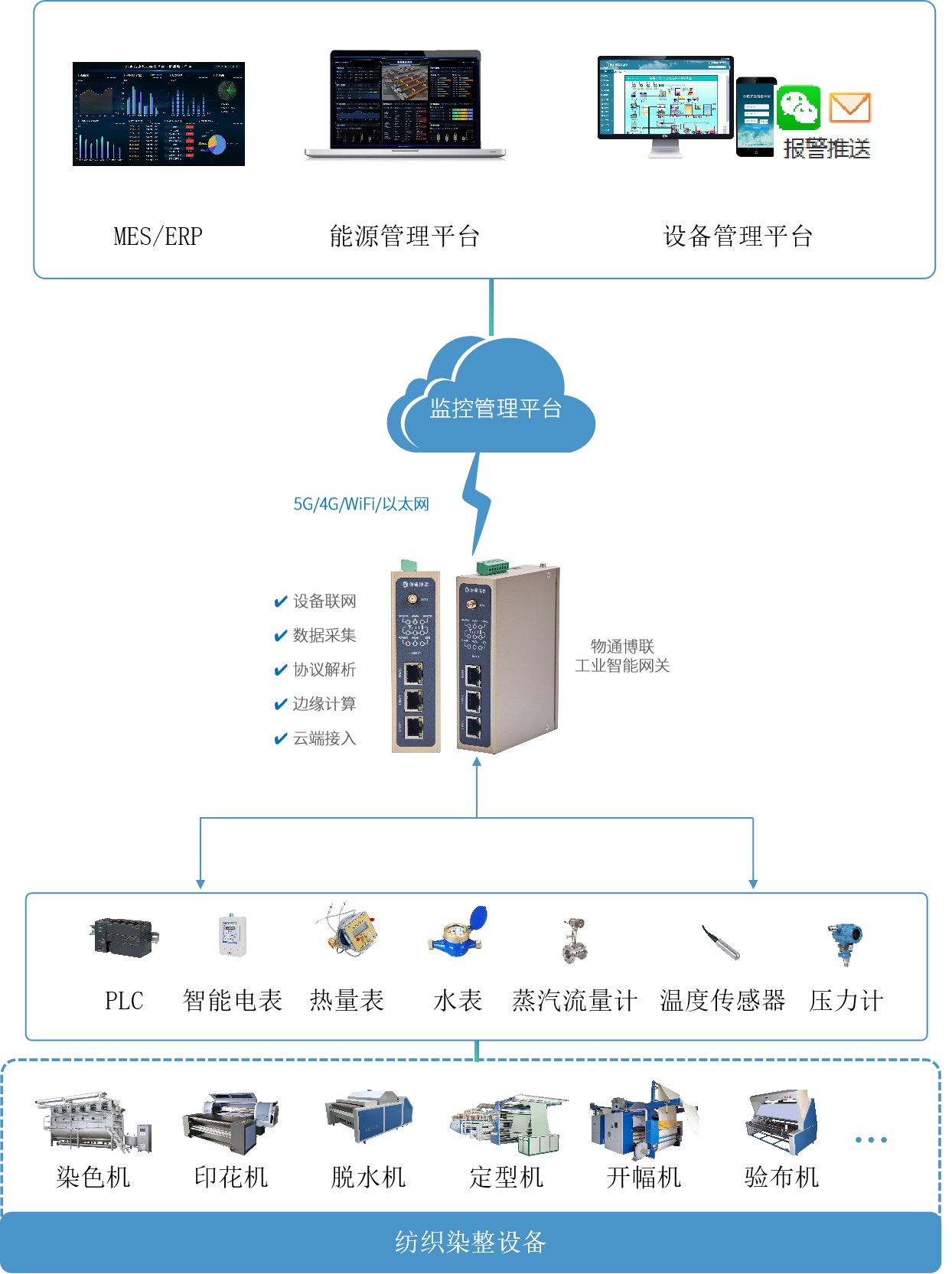 物通博聯工業智能網關支持接入PLC、儀器儀表、傳感器、數控機床、工業機器人等設備,實現“一對多”數據采集,同時具備斷點續傳能力,能夠有效替代人工抄表,確保數據完整。