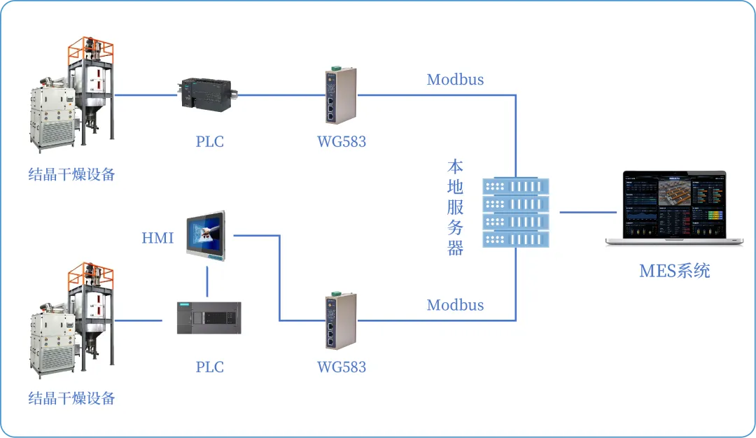 物通博聯·工業智能網關具備多個串口/網口等通信接口,支持多協議解析(PLC、儀器儀表、傳感器等),并通過Modbus、MQTT、HTTP等協議對接到上位機或云平臺中。